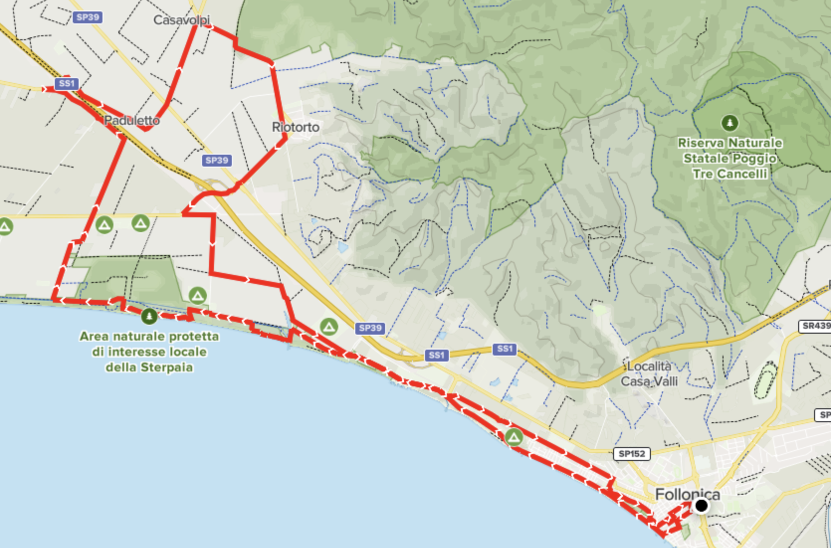 Facile percorso in mtb o gravel bike lungo le spiagge a ponente di Follonica: Torre Mozza, Carbonifera, Mortelliccio, La Sterpaia, tutti famosi arenili frequentatissimi in estate, ma piacevolissimi anche fuori stagione. Il percorso su pista sterrata e sabbiosa all’andata e ritorno attraverso una strada asfaltata che attraversa le coltivazioni a cereali e girasoli della Maremma. Percorso facile alla portata di tutti. Lunghezza 38 km dislivello in salita 200 m.